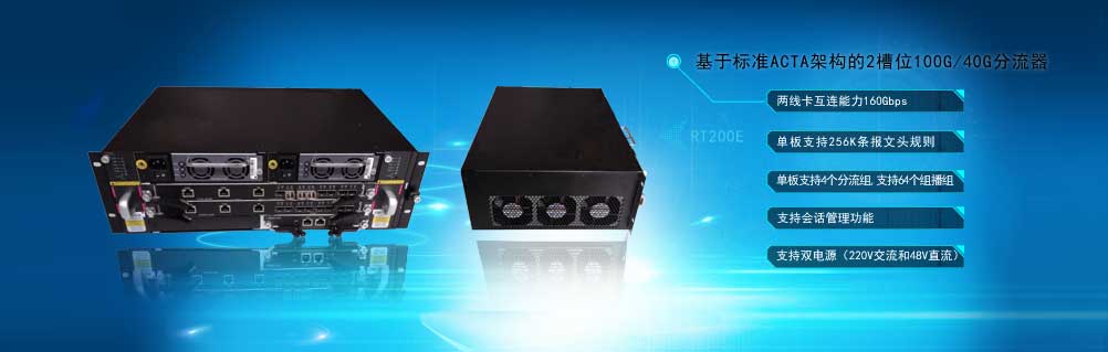 RT200設(shè)備是一款支持網(wǎng)絡(luò)行為審計(jì)系統(tǒng)、網(wǎng)絡(luò)內(nèi)容審計(jì)系統(tǒng)和入侵檢測系統(tǒng)的高速流量預(yù)處理平臺(tái)。